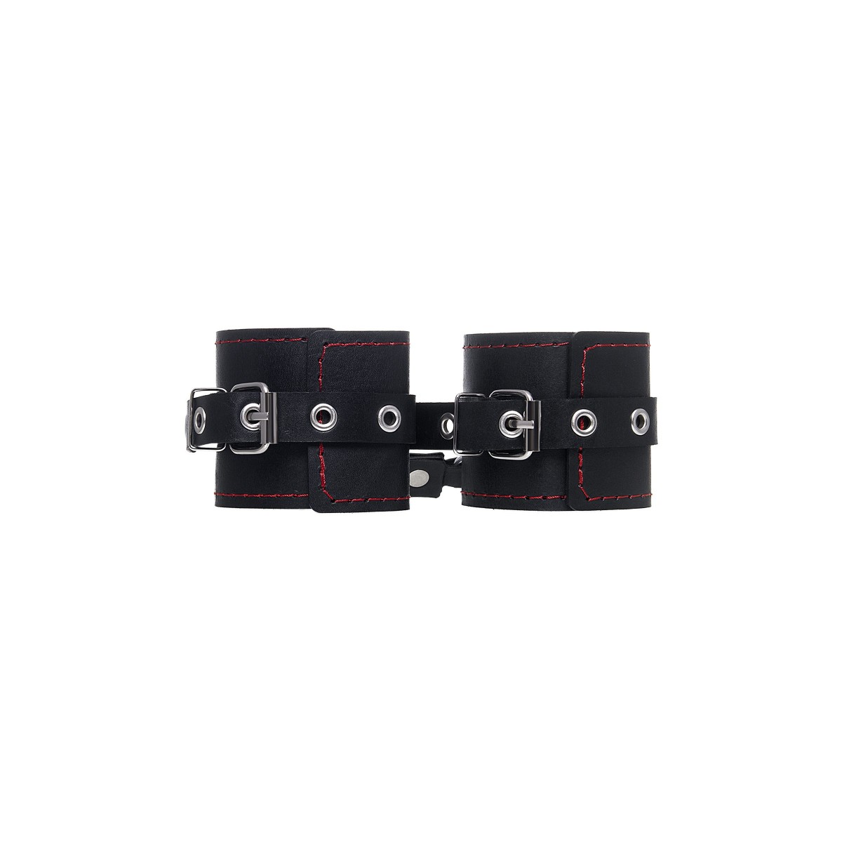 Однослойные кожаные наручники с контрастной строчкой красного цвета могут стать стильным аксессуаром на «свободных» руках, но могут послужить вашим целям и фантазиям по своему прямому назначению. Наличие двух карабинов и колец позволяет использовать изделие как раздельно – аксессуар-манжеты, так и как наручники для фиксации. К широким металлическим кольцам также можно присоединить и другие аксессуары при помощи карабинов. Благодаря универсальному размеру наручники могут использоваться и мужчинами, и женщинами. Размер легко регулируется с помощью металлических пряжек, органично вписывающихся в общий стиль. Длина манжет - 20 см, ширина - 6,5 см. Длина сцепки - 11 см.