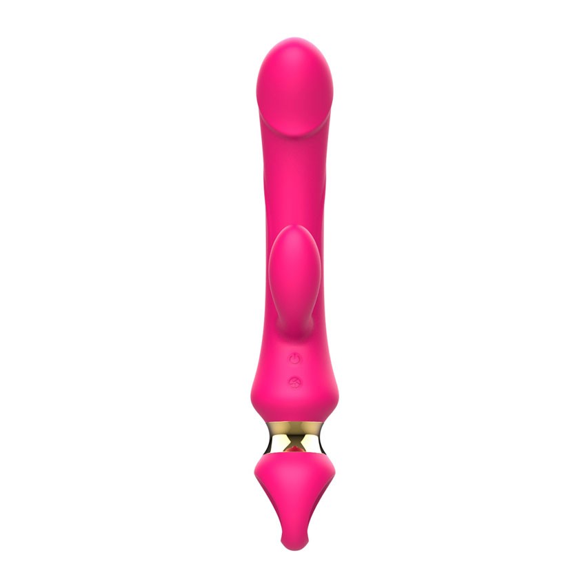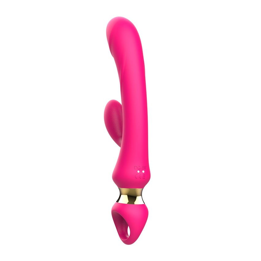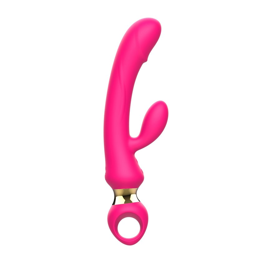 Розовый вибратор-кролик с ручкой-кольцом. 10 режимов вибрации. Рабочая длина - 13,3 см.